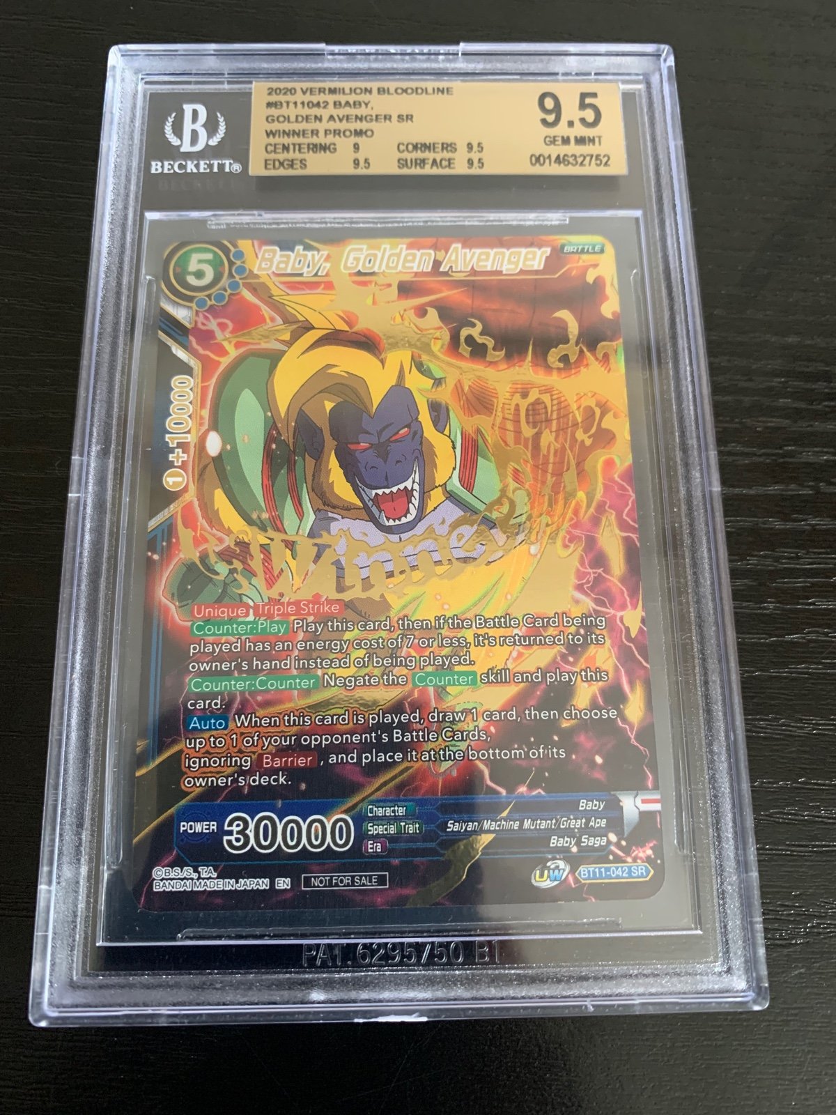 Dragon Ball Super Cards Baby Golden Avenger BT11-042 SR Alternate Art Tournament Winner BGS 9.5 Beckett GOLD STAMP FOIL
