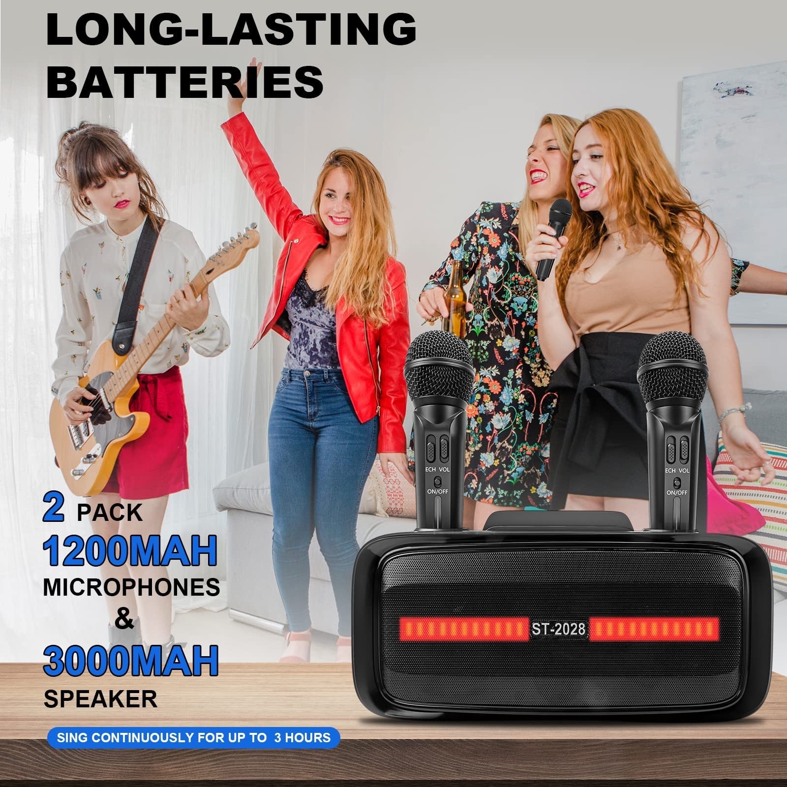 This karaoke machine has a powerful vocal cancellation function, built-in 2 10-watt speakers, equipped with a portable wireless microphone, and has a long battery life,and multiple input methods, which is very suitable for birthday, Christmas and New Year's family gatherings.