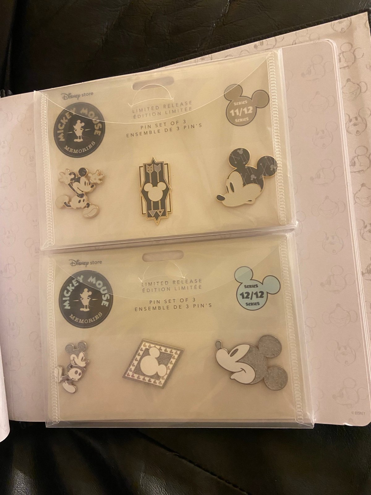 There are 12 sets of pins in the book. January was from Shanghai Disney Store & the rest were from the US Disney Store. They are genuine with tags.