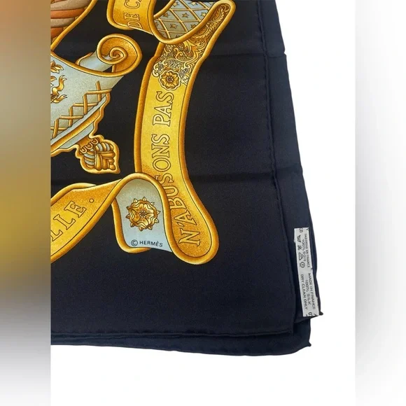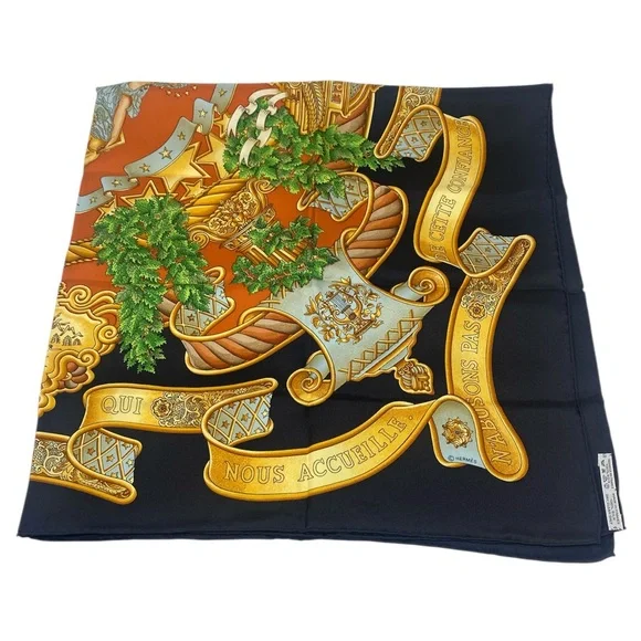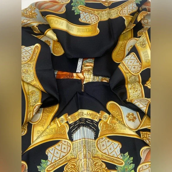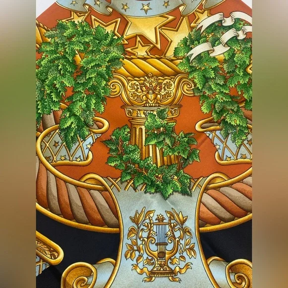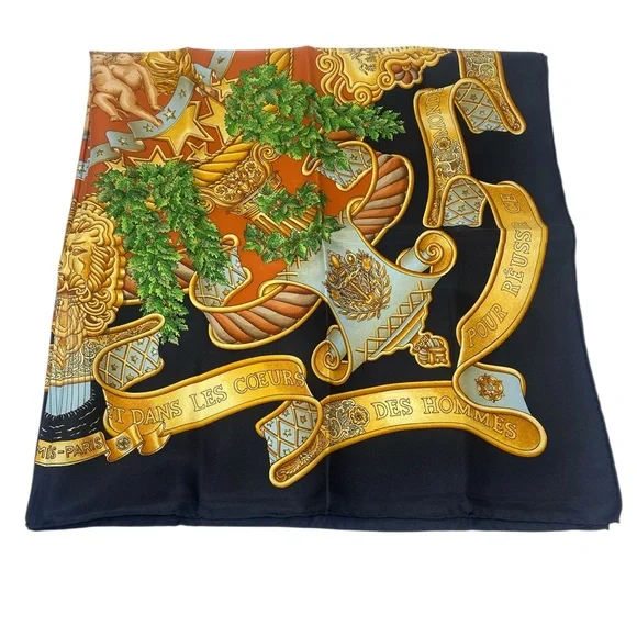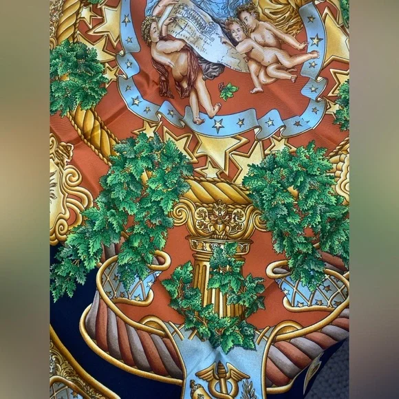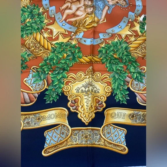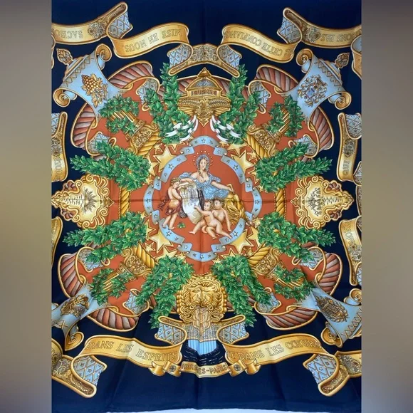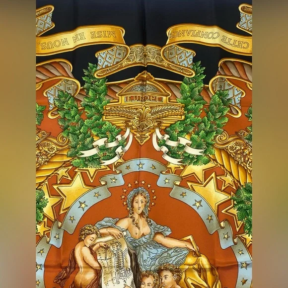 Beautiful Vintage Carre 90 “ EUROPE “ by Joachim Metz in excellent/mint conditionThis bold and magnificent design celebrates the founding of the European Union on November 1, 1993. Today twenty-seven member states strong, the EU is headquartered in Maastricht, Netherlands.Originally founded by Germany, France, Italy, Belgium, Luxemburg and the Netherlands, its purpose was and is to empower member states both politically and economically.A thought inspiring phrase covers a scroll and surrounds Marianne, the French allegorical figure of Liberty, Equality, Brother- and Sisterhood!Each of the four corners features a different symbol from Greek mythology.This is an authentic vintage Hermès silk scarf, a true collector’s piece that embodies the luxury and craftsmanship of the brand. Made from the finest silk, it features an intricate design with vibrant colors that remain stunning over time.Only purchase if you appreciate the uniqueness of vintage pieces . If you have any questions, feel free to ask!