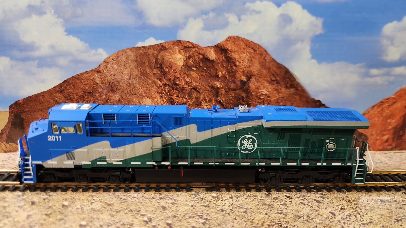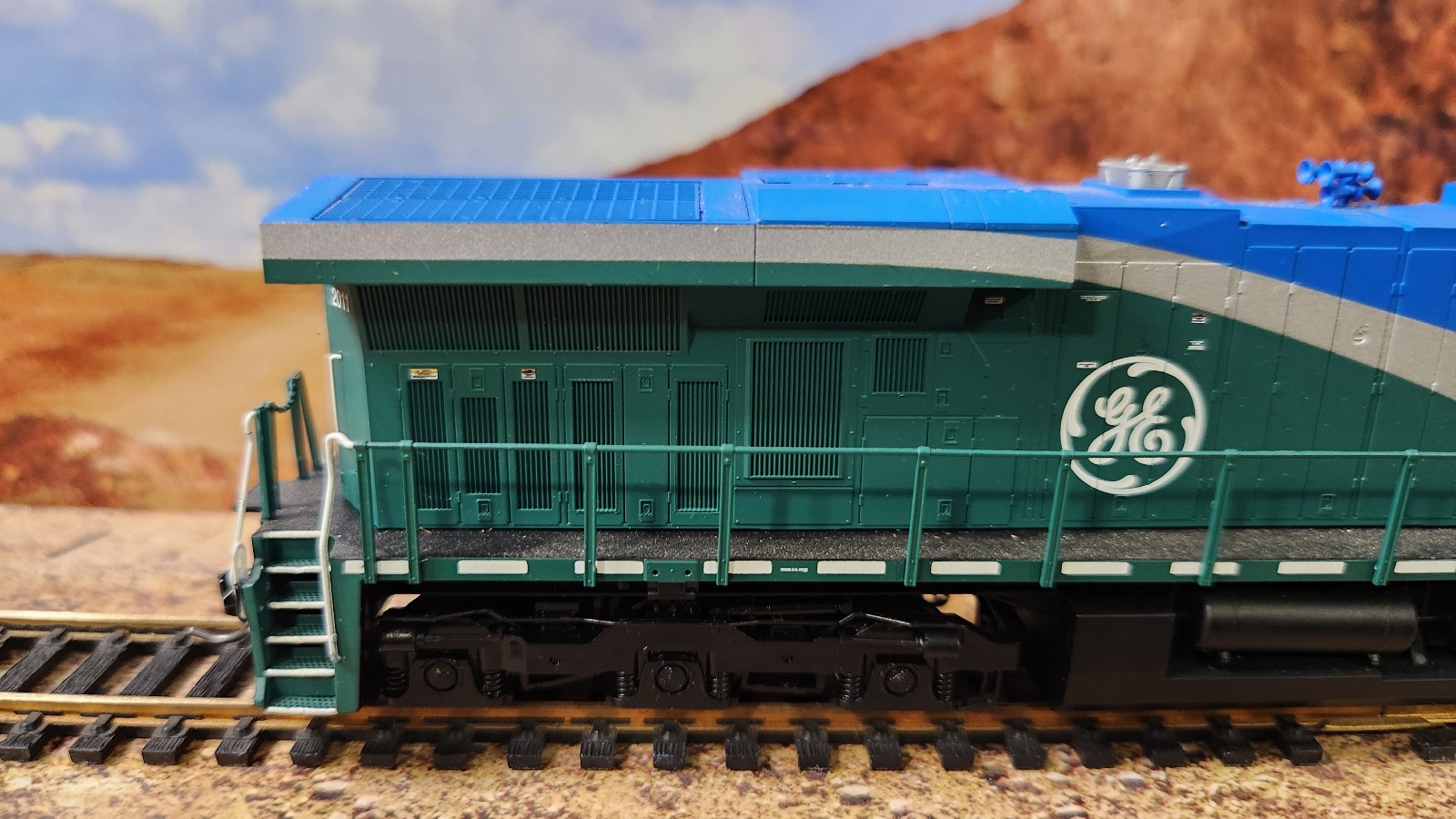This is an MTH ES44DC Locomotive. The prototype has an advanced 12-cylinder prime mover, qualified to Tier II emissions standards. This new HO scale replica is decorated in the GE – Demonstrator colors of green, blue, and silver. The lettering is white. Knuckle couplers. Has smooth 12-wheel drive. Some damaged rails, see pics. Original box. No paperwork. Bench tested, runs great. Directional lighting works. Sold as is pictured and seen in video. No returns. Please see both for reference. Nice looking locomotive! Thank you for looking.