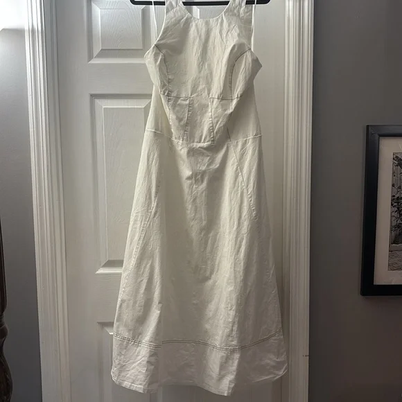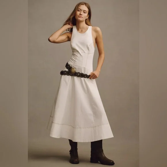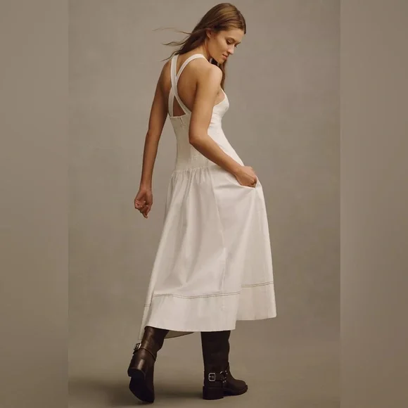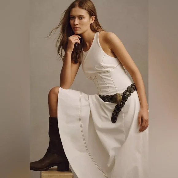 From site Style No. 4130264840054; Color Code: Easy, breezy Kenzie is THE dress for doing things and looking cool while doing them, featuring an of-the-moment drop-waist, criss-cross back, and POCKETS.Cotton, polyesterBack zipMachine washImportedPhoto with person wearing taken from anthro site reviewsNew with tags never wornBelt not included